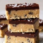 These No-Bake Vegan Cookie Dough Bars are a deliciously indulgent treat featuring a rich, almond flour-based vegan cookie dough loaded with mini chocolate chips, topped with a creamy dark chocolate and peanut butter layer. Perfect for anyone craving a sweet, dairy-free, and egg-free dessert without any baking required.