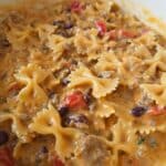 This hearty One Pot Caprese Pasta combines cooked lean ground beef with aromatic spices, beans, tomatoes, and mini farfalle pasta simmered together in a flavorful broth. Topped with a blend of sharp white and sharp cheddar cheeses melted into a creamy sauce, this all-in-one meal is perfect for a quick, satisfying weeknight dinner with minimal cleanup.