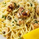 This One Pot Chicken Caesar Pasta combines tender, lemon pepper seasoned chicken breasts marinated in Caesar dressing with angel hair pasta cooked in a creamy Caesar and Parmesan sauce. Garlicky, tangy, and rich, this simple skillet meal is perfect for an easy dinner with minimal cleanup.