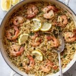 A flavorful one pot dish featuring succulent garlic butter shrimp cooked with toasty orzo pasta in a rich chicken stock, finished with fresh parsley and a bright lemon touch. Perfect for a quick and easy weeknight dinner that delivers gourmet taste with minimal cleanup.
