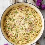 This One Pot Spaghetti Carbonara recipe offers a quick and delicious twist on the classic Italian dish. Combining tender spaghetti, creamy egg yolks, heavy cream, and savory turkey bacon, this meal comes together quickly in a single pot, making cleanup a breeze. Enhanced with garlic, herbs, Parmesan cheese, and fresh peas, it delivers rich flavors and a satisfying texture perfect for any weeknight dinner.