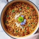 - Serve: Remove from heat and serve warm, topped with Parmesan cheese if desired. Enjoy your hearty, comforting one pot spaghetti meal!