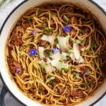 This One Pot Spaghetti Recipe with Ground Beef is a quick and easy meal perfect for busy weeknights. Combining lean ground beef, flavorful herbs, and a rich tomato sauce cooked together with spaghetti noodles in a single pot, it simplifies dinner preparation without sacrificing taste. The beef and aromatic onion-garlic base meld beautifully with oregano and thyme, while simmering in beef stock ensures the pasta cooks to a perfect al dente texture. Serve it topped with Parmesan cheese for a comforting, hearty pasta dish that everyone will love.