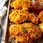 This Oven ‘Fried’ Cornflake Chicken recipe offers a crispy, flavorful alternative to traditional fried chicken by baking a crunchy cornflake-coated chicken to golden perfection. Paired with a spicy, sweet hot honey sauce, this dish delivers all the indulgence of fried chicken with less oil and mess, perfect for a family meal or sandwich topping.