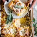 - Cool and Garnish: Allow the casserole to cool for about 10 minutes. Dust the top with powdered sugar and garnish with fresh sage sprigs.