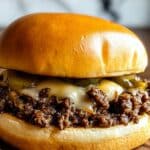 - Assemble and serve: Spoon the cheesy beef mixture generously onto the toasted brioche buns. Serve warm for a delicious, hearty sandwich experience.