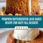 Indulge in the warm, gooey delight of Pumpkin Butterscotch Lava Cakes, featuring a luscious pumpkin-infused batter encasing a molten butterscotch center. Perfectly baked to achieve a set exterior with a soft, flowing core, these individual cakes offer a comforting autumn dessert experience, especially when paired with vanilla ice cream and a drizzle of caramel sauce.