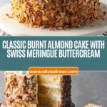 Textural delight: Crispy burnt almonds contrast beautifully with the soft, moist cake layers and smooth buttercream.