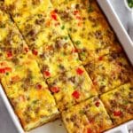 A hearty and delicious breakfast casserole combining savory pork sausage, fluffy eggs, vibrant bell peppers, and melted cheddar cheese. Perfect for a weekend brunch or make-ahead meal that reheats beautifully.