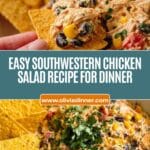 - Chill and Serve: Refrigerate the Southwestern Chicken Salad until chilled and the flavors have melded, ideally for at least 30 minutes. Serve this fresh salad on whole wheat toast, with tortilla chips, on a rice cake, or wrapped in a tortilla to enjoy a delicious and nutritious meal.