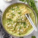 Spaghetti Verde is a delicious Mexican-inspired pasta dish featuring a creamy poblano pepper sauce. Roasted poblano peppers blended with cream cheese, sour cream, cilantro, and queso fresco create a flavorful, rich sauce perfectly coating al dente spaghetti for a comforting and vibrant meal.
