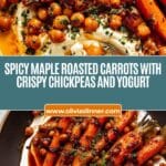 Spicy Maple Roast Carrots with Crispy Chickpeas and Lemon Garlic Yogurt Sauce Recipe