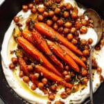 This vibrant recipe features spicy maple roasted carrots paired with crispy seasoned chickpeas and a refreshing lemon garlic yogurt sauce. The carrots are caramelized with a sweet and spicy maple-sriracha glaze, while the chickpeas are oven-roasted to a perfect crisp with smoky paprika and garlic. Finished with a tangy yogurt sauce, fresh coriander, and toasted pistachios, this dish offers a harmonious balance of flavors and textures that works wonderfully as a hearty side or light main.