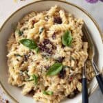This Spinach and Sun-Dried Tomato Boursin Orzo Bake is a creamy, flavorful, and easy-to-make one-dish meal. Combining the rich herbaceous flavor of Boursin cheese with the savory punch of sun-dried tomatoes, Kalamata olives, and fresh spinach, this orzo bake is perfect for a comforting dinner that requires minimal effort but delivers maximum taste. The dish is baked to perfection, resulting in tender orzo infused with aromatic herbs and creamy cheese, finished with fresh spinach and Parmesan for a delicious Mediterranean-inspired casserole.