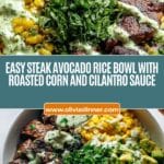 Steak Avocado Roasted Corn Bowl with Cilantro Cream Sauce Recipe