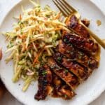 - Dress Slaw: In a separate bowl, whisk together mayonnaise, apple cider vinegar, honey, minced garlic, salt, and pepper. Pour this dressing over the apple mixture and toss well to combine. Serve the slaw alongside the chicken.