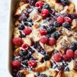 This Sweet Breakfast Casserole features flaky bakery croissants soaked in a luscious lemon custard with mixed berries, baked to golden perfection and topped with a tangy cream cheese lemon glaze. It’s perfect for a make-ahead brunch or special occasion breakfast that combines rich textures and fresh flavors in every bite.