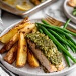 This baked pesto salmon recipe is easy, juicy, and incredibly flavorful. Fresh salmon filets are seasoned with salt and pepper, then topped with vibrant homemade or store-bought pesto before being baked to perfection. Juicy and tender with a fragrant herbaceous crust, this dish is perfect for a quick weeknight dinner or an impressive meal for guests.