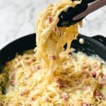 A deliciously creamy and easy-to-make cabbage carbonara that mimics the texture and comfort of traditional pasta carbonara. Roasted cabbage acts as the perfect low-carb alternative to noodles, tossed in a rich sauce of crispy bacon, garlic, onion, heavy cream, and Parmesan cheese. This dish is satisfying, comforting, and perfect for a quick weeknight meal.