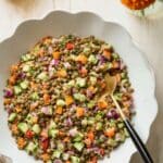 This vibrant and flavor-packed lentil salad combines tender brown lentils with fresh bell peppers, cucumber, tomatoes, and parsley, all tossed in a creamy, tangy tahini and lemon dressing. It’s a simple, healthy, and refreshing dish perfect for a light lunch or a nutritious side.