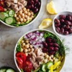 This refreshing Mediterranean Tuna Salad combines protein-rich tuna and beans with fresh vegetables and herbs, all tossed in a zesty homemade vinaigrette. It’s a healthy, flavorful, and quick-to-make salad perfect for a light lunch or dinner.