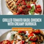 Tomato Basil Chicken with Burrata is a vibrant and flavorful grilled chicken dish topped with creamy burrata cheese and a fresh tomato basil salsa. This Italian-inspired recipe combines tender, seasoned chicken breasts with a bright and zesty topping of grape tomatoes, fresh basil, and a drizzle of balsamic glaze, making for a delightful and elegant meal perfect for any occasion.