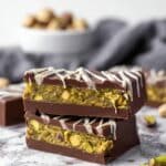 This Viral Dubai Chocolate Bar recipe features a crunchy kataifi shredded dough base infused with rich pistachio butter and tahini, enveloped in layers of silky white and dark chocolate. Perfectly balanced between flaky texture and creamy nutty flavors, this decadent treat is ideal for sharing or gifting.