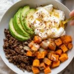 These Viral Hot Honey Ground Beef Bowls are a delicious and flavorful meal featuring roasted sweet potatoes, seasoned ground beef, creamy cottage cheese, fresh avocado, and a drizzle of spicy hot honey. Perfect for a satisfying lunch or dinner, this recipe balances sweet, spicy, and savory elements for a well-rounded dish that’s easy to prepare and ideal for meal prep.