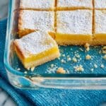 - Serve: Cut into squares and generously dust the top with powdered sugar before serving. Enjoy the bright and buttery lemon bars chilled or at room temperature.