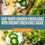 White Chicken Enchiladas made with tender rotisserie chicken, creamy Monterey Jack cheese, and a rich green chile sauce, baked to perfection for a delicious and comforting Mexican-inspired meal.