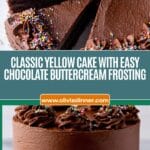 - Frost the Cake: Use the prepared chocolate buttercream to frost the cooled, leveled yellow cake layers. Decorate as desired, such as with sprinkles.