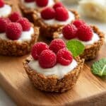 - Assemble: Once cooled, fill each granola cup with approximately 1/4 cup of vanilla yogurt. Top with fresh raspberries or your choice of berries and, if desired, add a small dollop of reserved peanut butter for extra flavor.